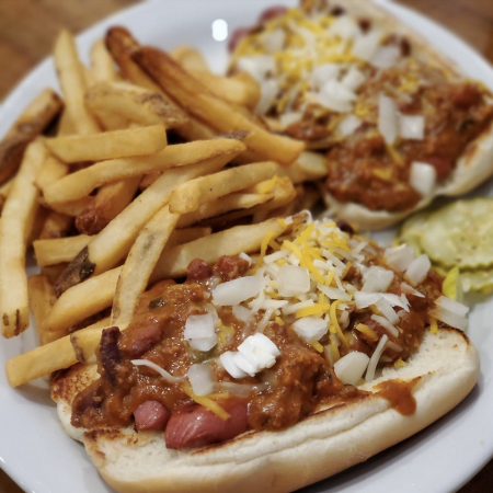 All burgers are 100% lean ground steak patties cooked medium as required under State of Hawaii Department of Health regulations & are served with lettuce, local tomato, onion, dill pickle spear & mayo on a fresh potato bun. All big burgers come with skin-on fries or upgrade to roasted-garlic fries.