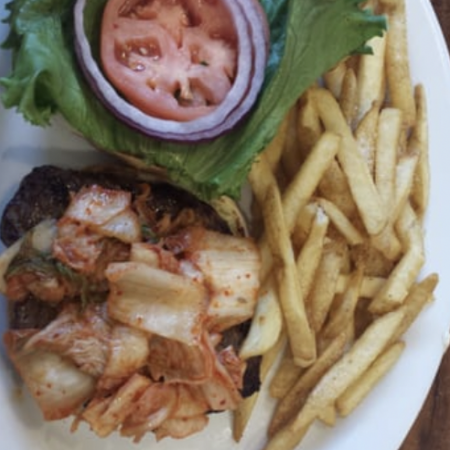 All burgers are 100% lean ground steak patties cooked medium as required under State of Hawaii Department of Health regulations and are served with lettuce, local tomato, onion, dill pickle spear & mayo on a fresh potato bun. All big burgers come with skin-on fries or add roasted-garlic fries. Add $5.99 for a small green salad. What a deal!